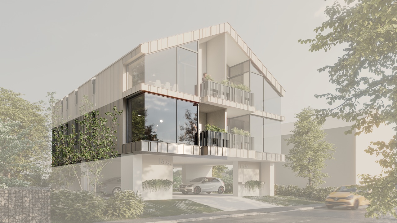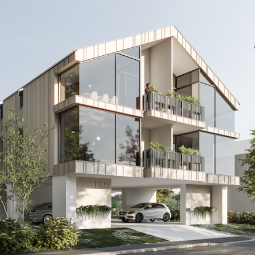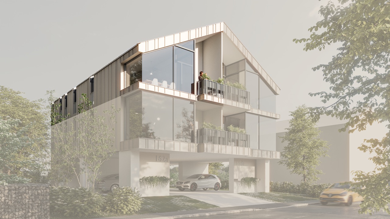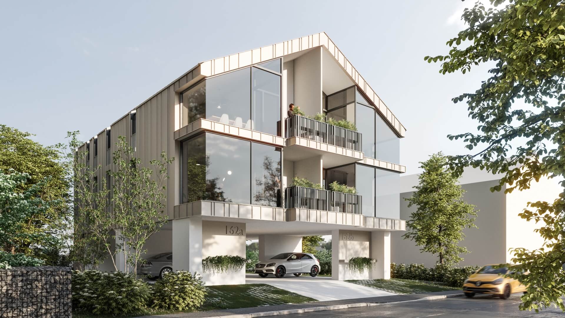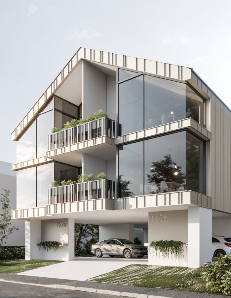 Večji del fasade bo prekrit s pločevinasto prezračevano fasado. Enak zaključni material bo uporabljen za strešno kritino. Fasade na območju parkiranja in na balkonih bodo zaključene s tankoslojno kontaktno fasado.